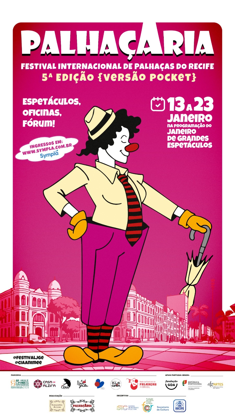 O PalhaçAria – Festival Internacional de Palhaças do Recife chega à sua 5a edição em formato pocket, reafirmando seu papel como um dos mais importantes encontros de palhaçaria feminina no Brasil. Criado e realizado pela Cia Animée (Recife), sob direção de Enne Marx, o festival se consolida como espaço de visibilidade, criação e diálogo para mulheres palhaças, reunindo artistas do Brasil e de Portugal.
